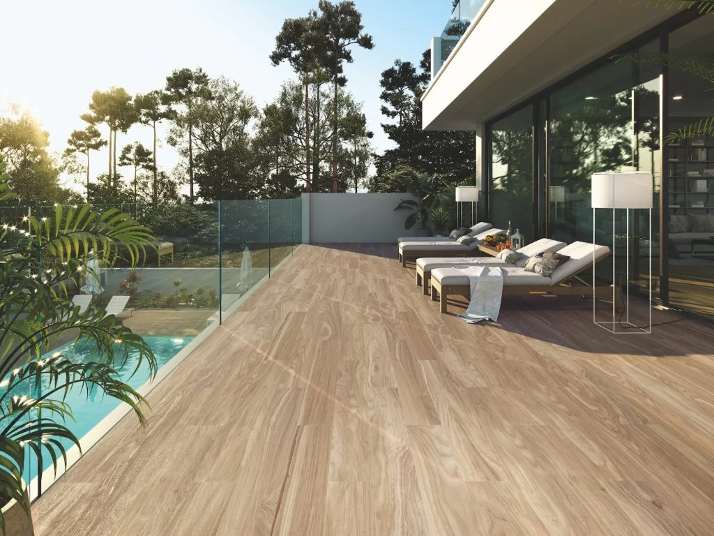 Los suelos de exterior son ideales para espacios al aire libre como terrazas, patios, áreas de piscina y zonas recreativas en jardines. Gracias a su excelente resistencia a la humedad, altas temperaturas y variaciones de temperatura, son una opción fiable para ambientes exteriores.